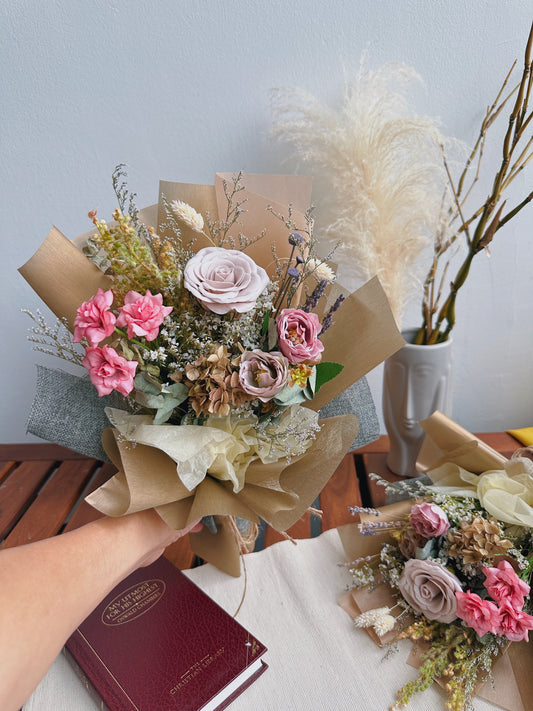 Every bouquet in the Pristine Series is made with fresh blooms, preserved flowers, and unique accents that bring out the natural beauty and charm of each piece. The understated designs, combined with soft, delicate tones, create an aura of refined elegance that suits both modern and traditional tastes.