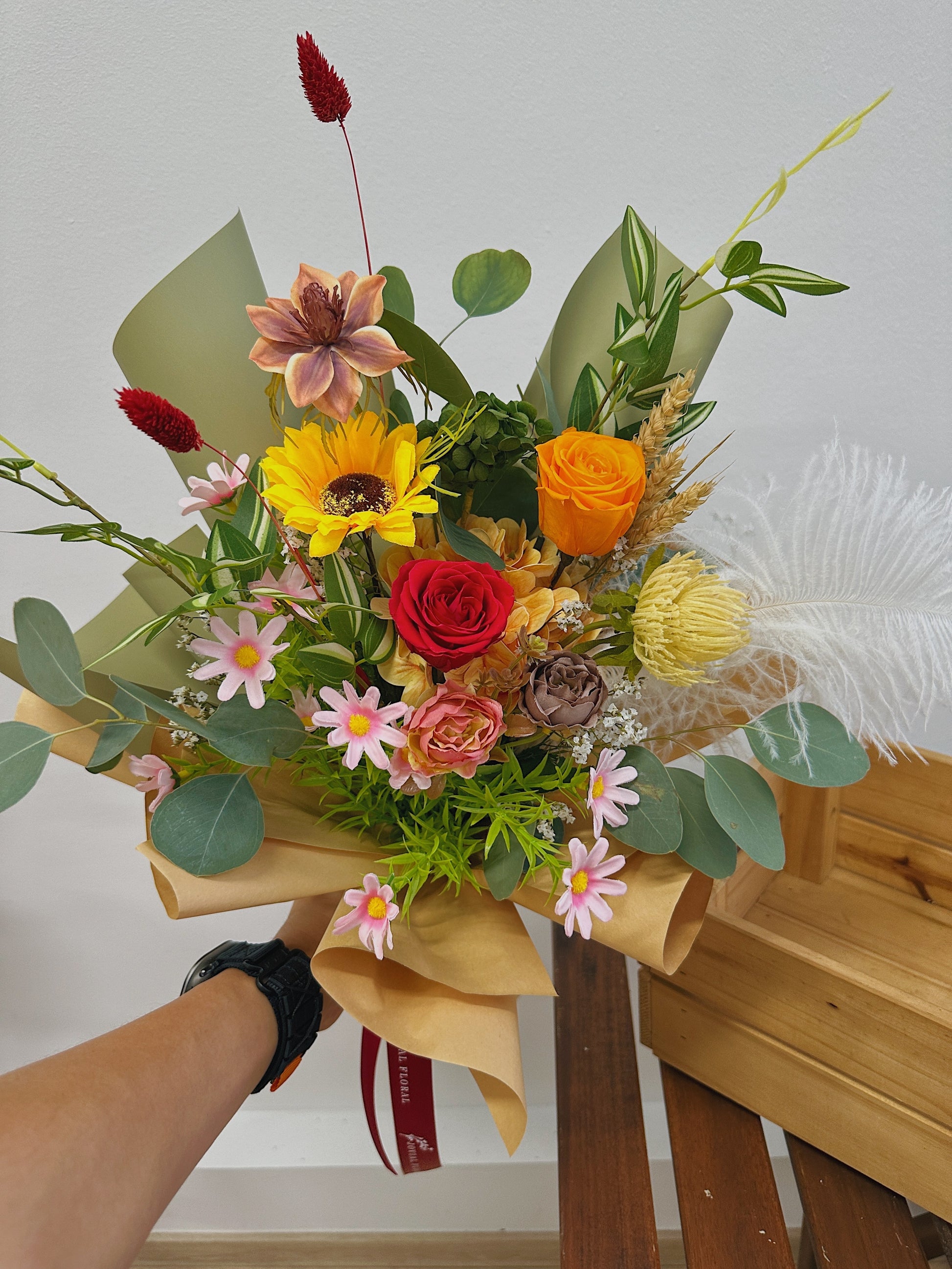 Do note that flowers are seasonal. Filler flowers might change, depending on availability. We will only substitute with flowers of a similar or superior look/feel and value.